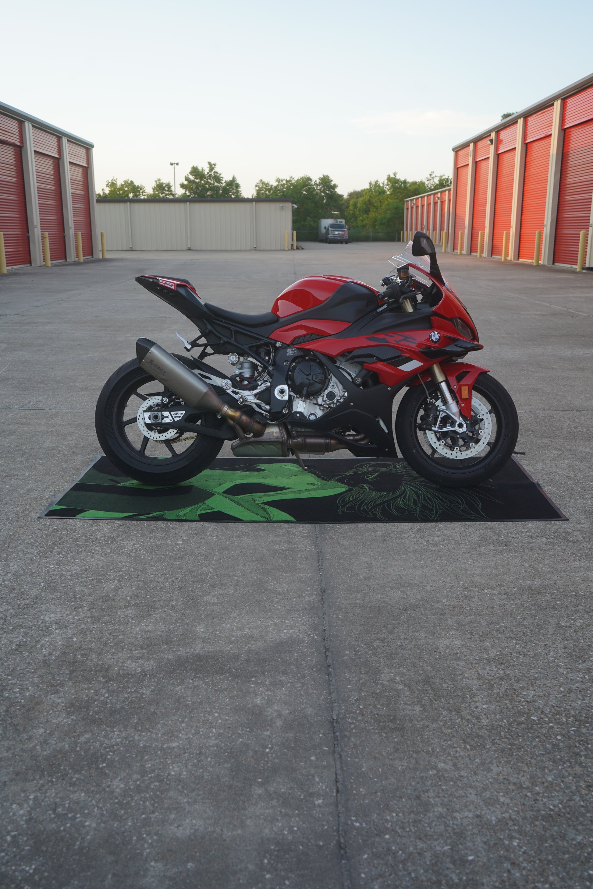 This mat adds a clean, sharp look under your bike while protecting your floor from oil and grime. Non-slip, easy to clean, and built to handle